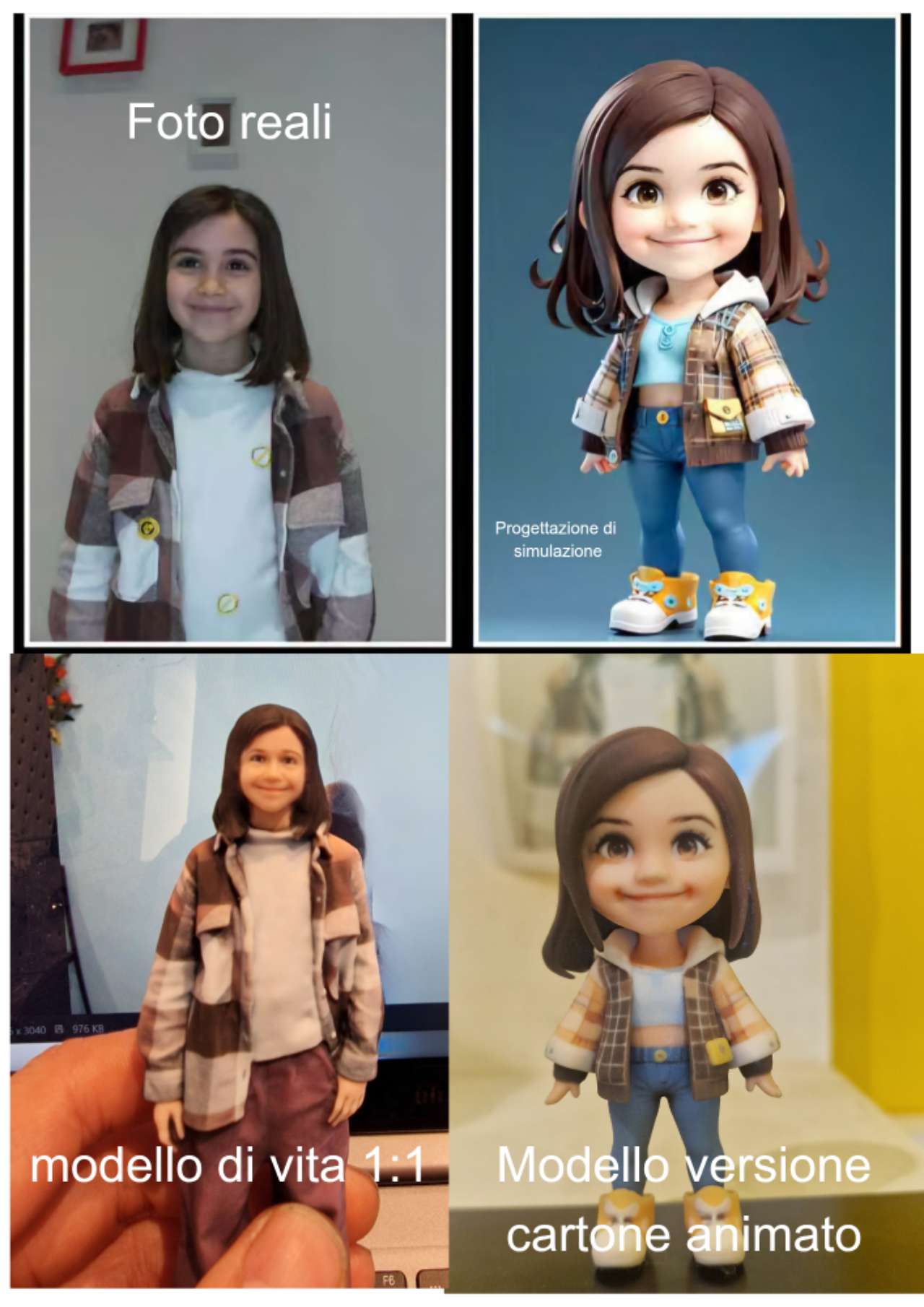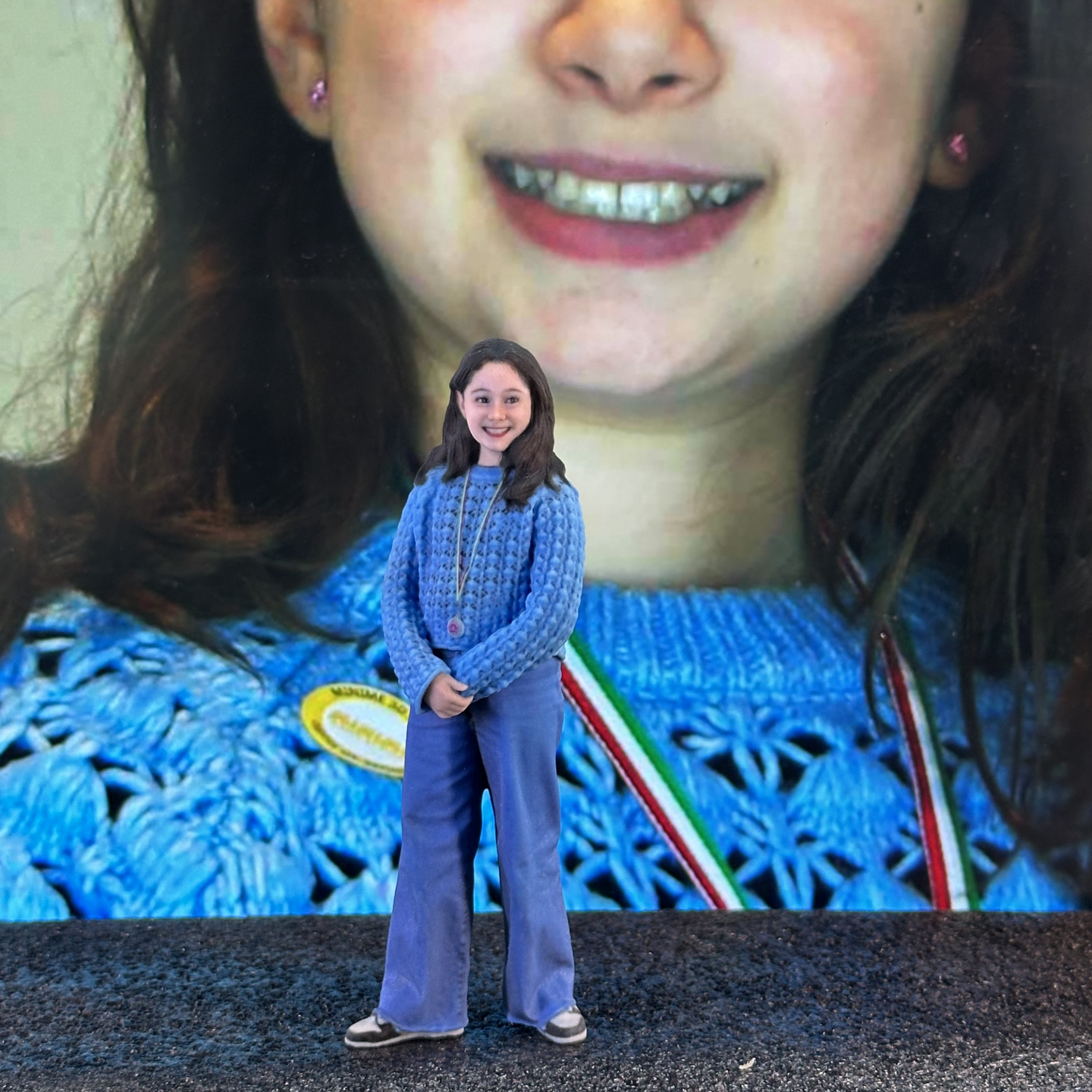 Bastano poche foto per trasformare il suo sguardo, la sua allegria e la sua unicità in una miniatura 3D piena di vita.