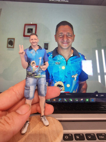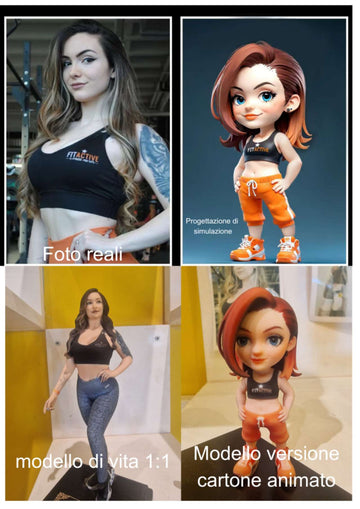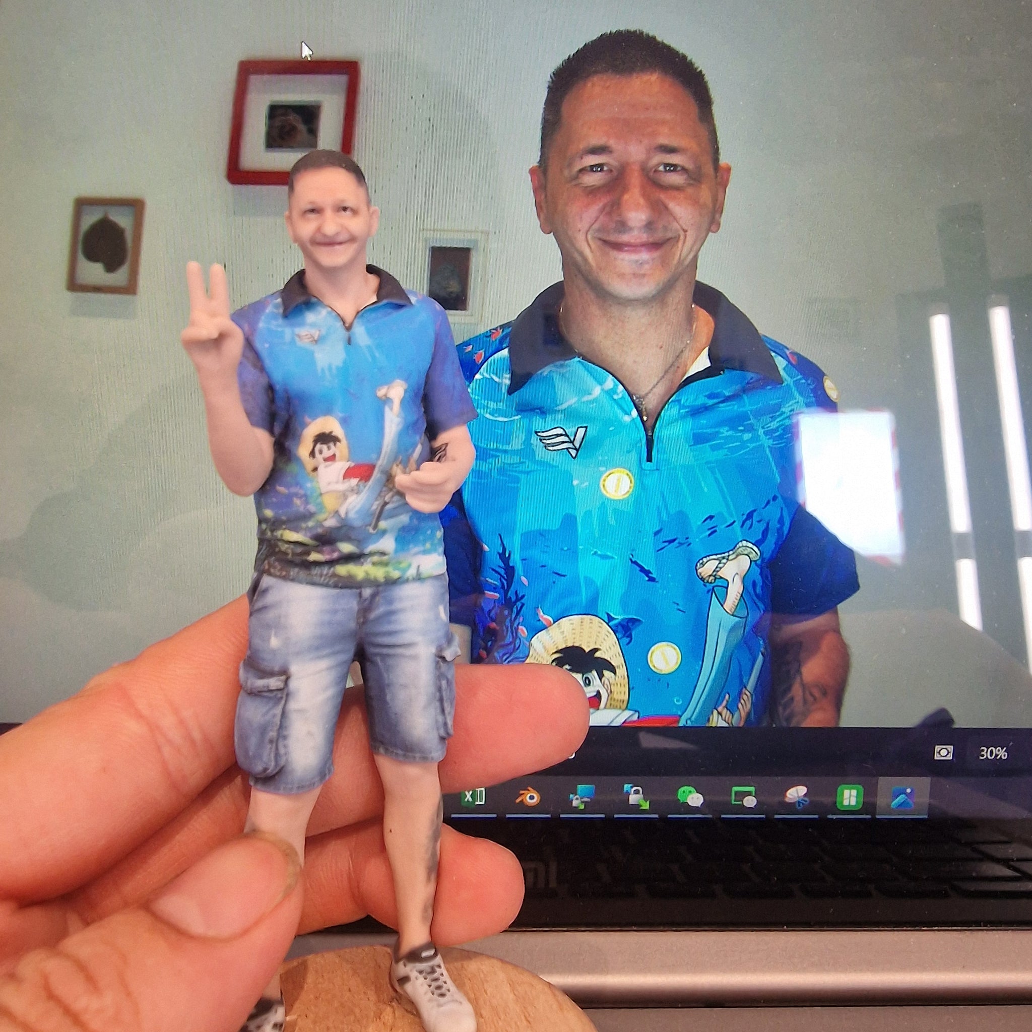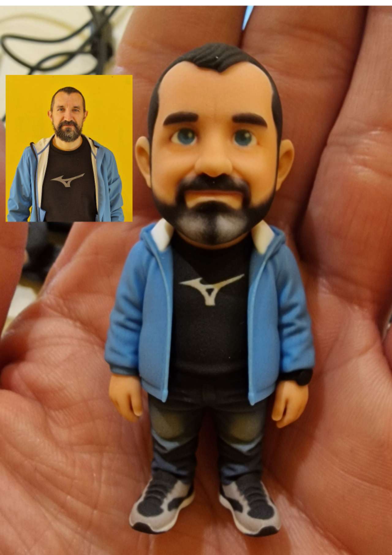 Hai una foto divertente o una posa che ti rappresenta? Caricala e noi la trasformiamo in una caricatura 3D unica e personalizzata. Il risultato è una miniatura in stile cartoon, colorata e piena di energia, realizzata in resina e rifinita a mano. Perfetta come regalo originale o per dare un tocco di ironia alla tua scrivania. Carica la tua foto e lascia che il nostro team dia vita alla tua versione 3D…con un pizzico di simpatia in più!