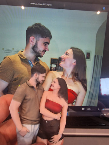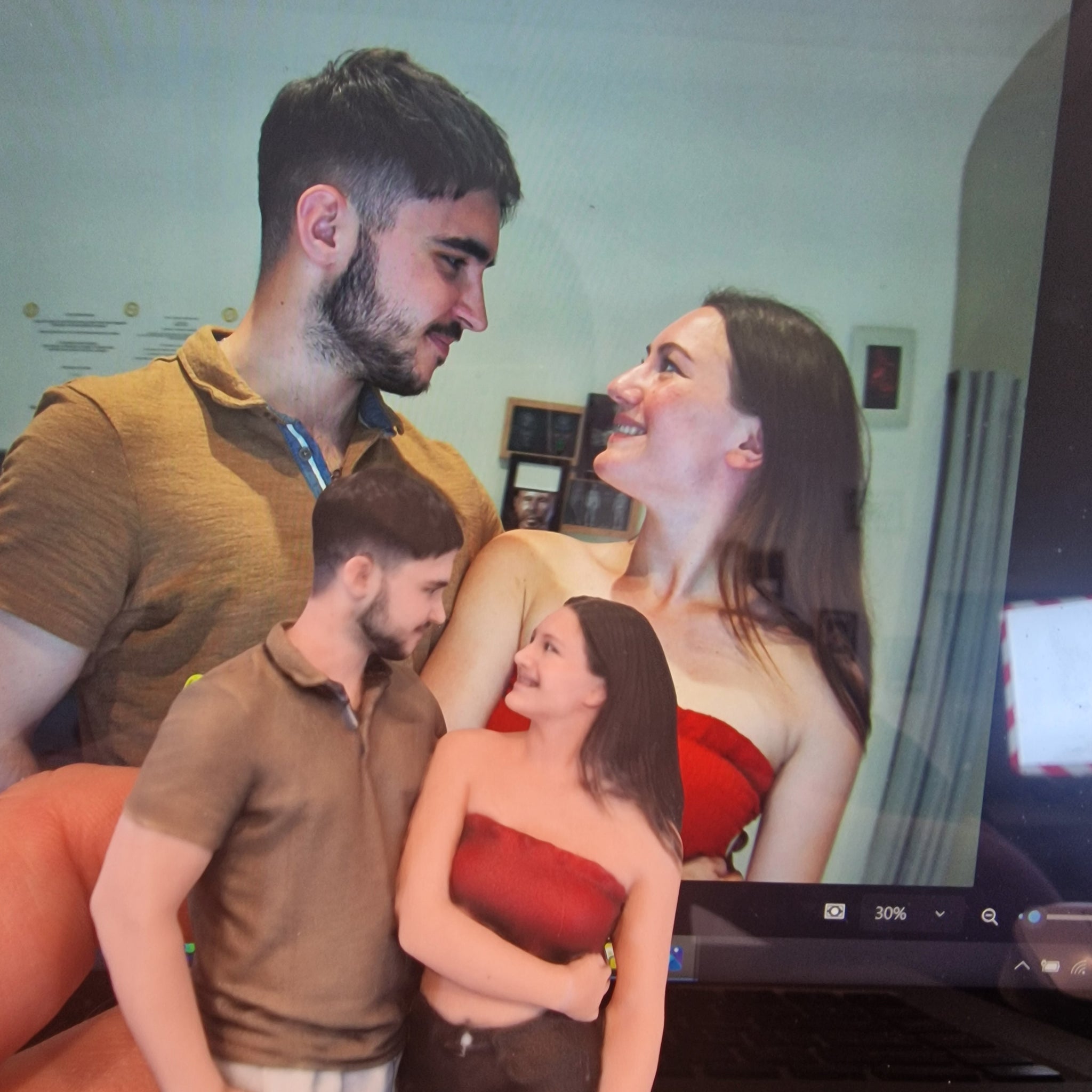 La sua simpatia, quella luce negli occhi che ti fa sciogliere in una miniatura 3D che racconta affetto, complicità e vita condivisa — proprio come la vostra storia.