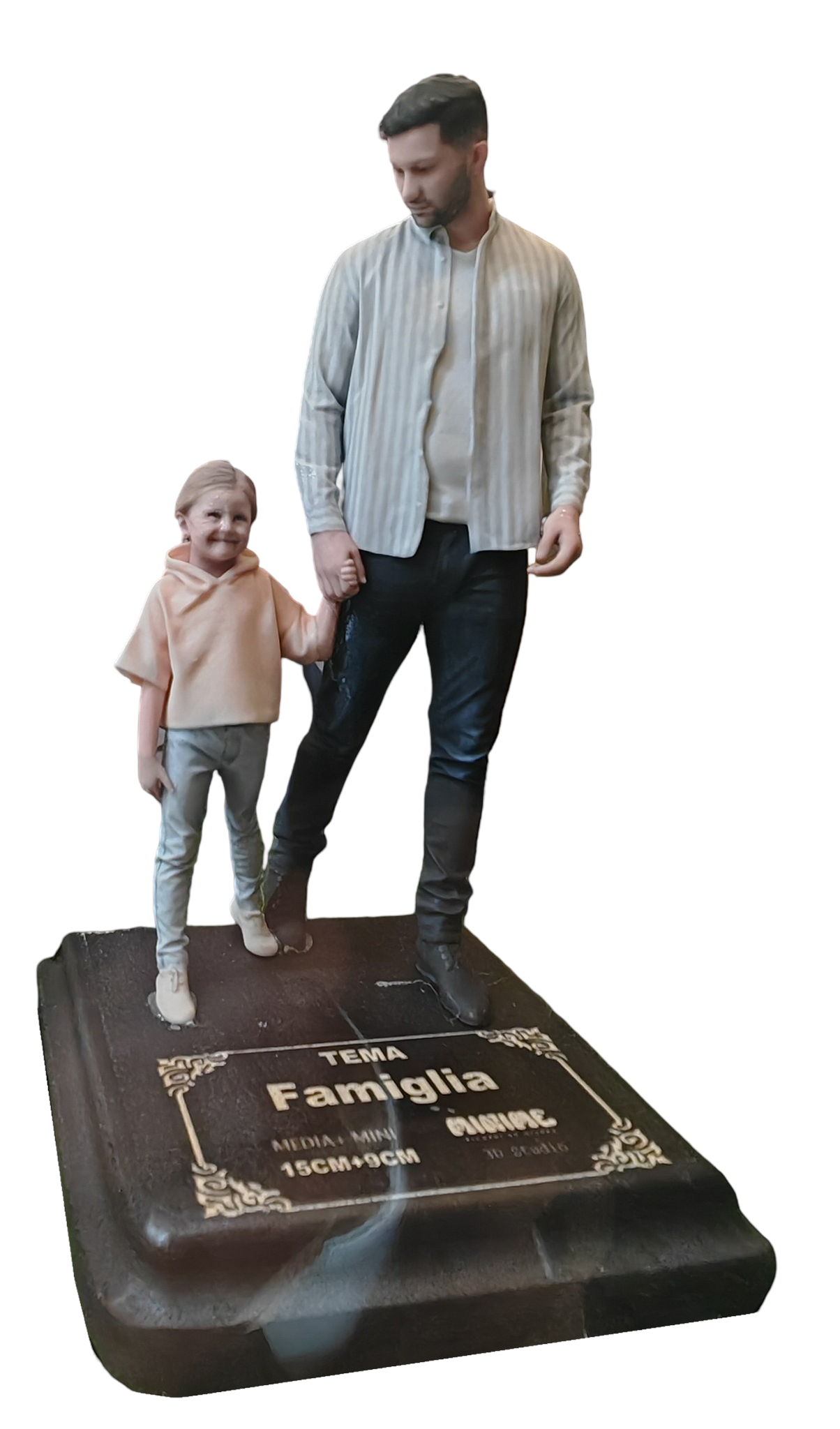 Grazie alla nostra tecnologia di scansione 3D e alla stampa in resina ad altissima definizione, ogni istante diventa tangibile: un sorriso, un abbraccio, uno sguardo catturato per sempre.